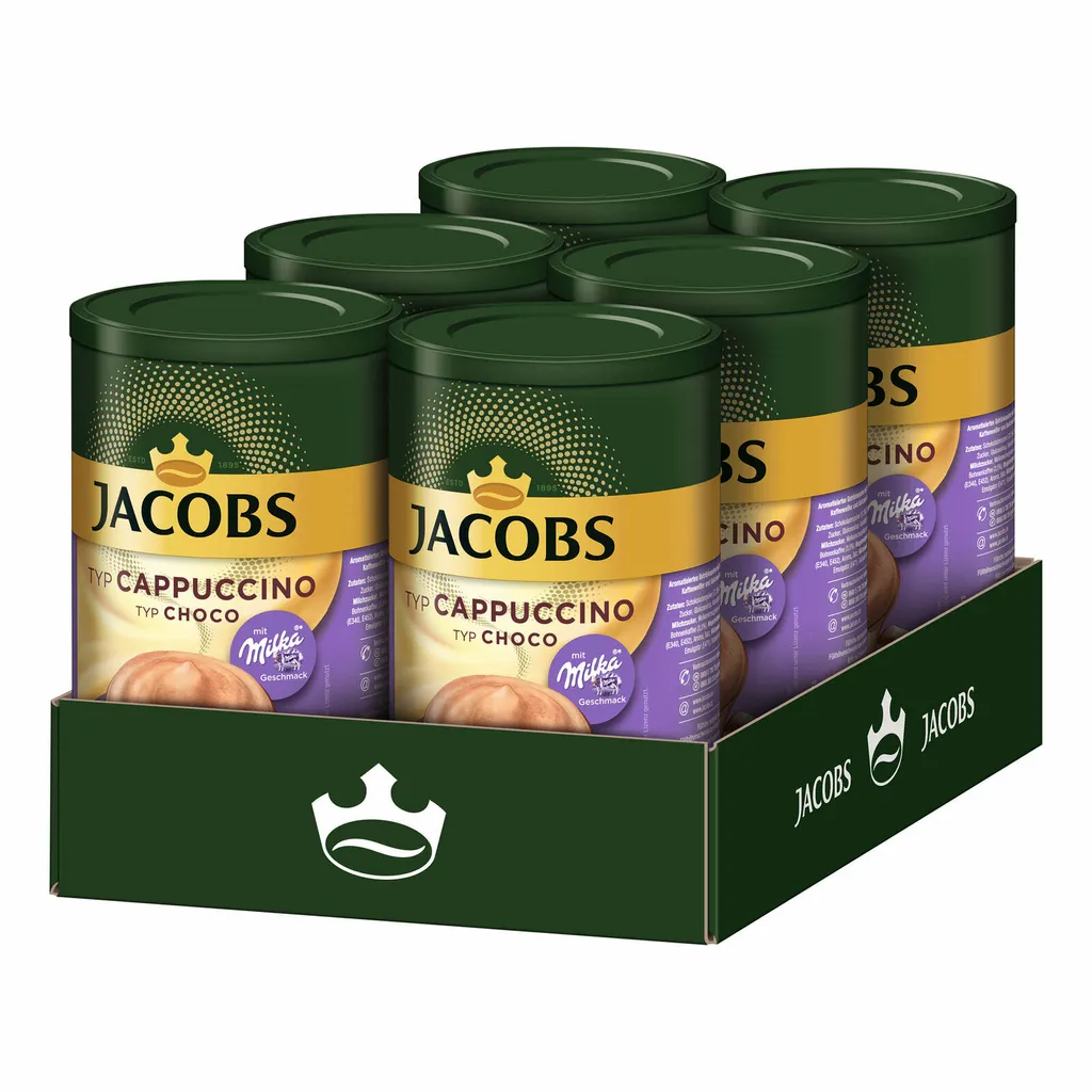 Schreibe die erste Rezension für „JACOBS Typ Choco Cappuccino 6 X 500 G Dosen Instantkaffee Mit Milka-Geschmack“ Antwort abbrechen