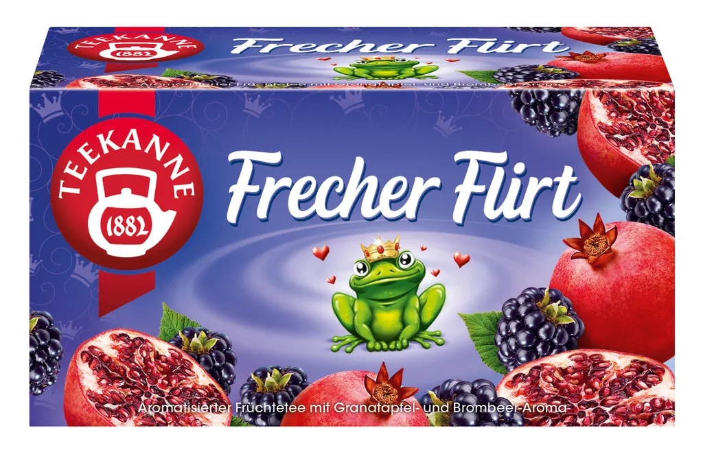 Mit dem Früchtetee Frecher Flirt hat TEEKANNE ein unwiderstehliches Pärchen zusammengebracht: Das fruchtige Aroma des Granatapfels trifft auf feines Brombeeraroma. Ein genussvolles Zusammenspiel, das immer wieder Lust auf mehr macht.